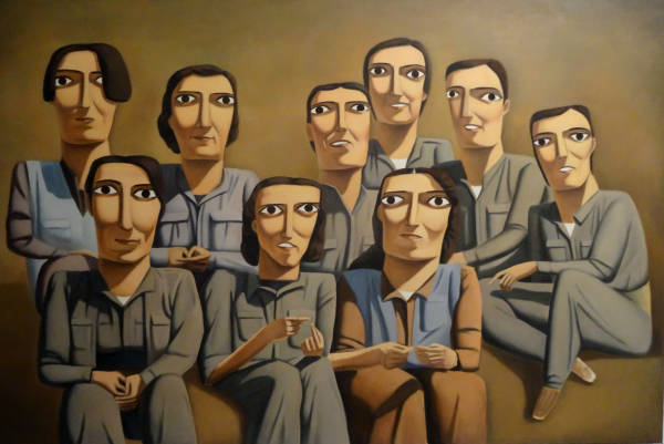 Его картины с широкоглазыми партизанскими бойцами сразу захватывают ваше внимание. Они демонстрируют спокойствие, решительность, силу и коллективизм.