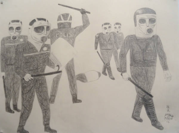 «Я также встретил многих курдов в Берлине, например, в закусочных кебаб. В их квартирах висят фотографии Оджалана, но в их магазинах вы не можете понять, что они курды. Поскольку я приехал в Германию со стипендией в области искусства, мне разрешено работать здесь как художнику. У меня когда-то была работа на кухне, поэтому я мог заплатить за аренду и зарабатывать на жизнь. Но это было запрещено мне властями. Мне разрешено жить только за счет моего искусства, поэтому я рисую сейчас все что угодно. Я даже могу нарисовать вашу кошку.