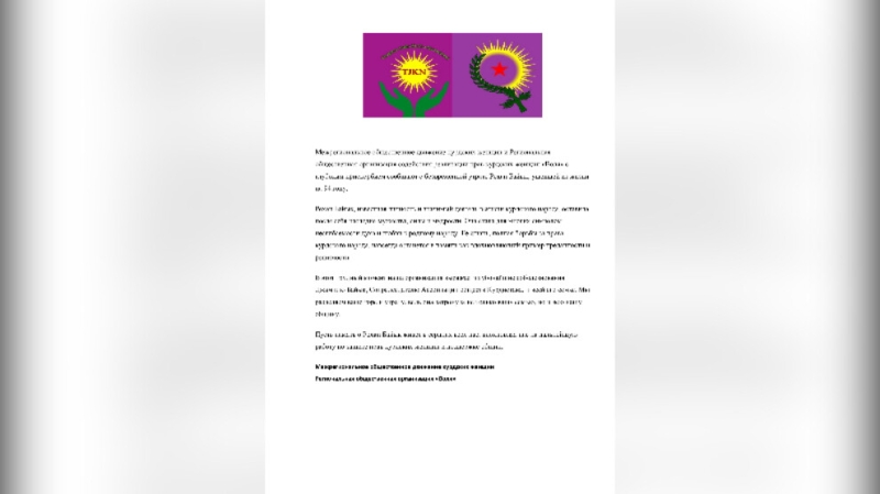 В этот трудный момент наша организация выражает глубочайшие соболезнования Джамилю Байык, Сопредседателю Ассоциации обществ Курдистана, и всей его семье. Мы разделяем ваше горе и утрату, ведь она затронула не только вашу семью, но и всю нашу общину.